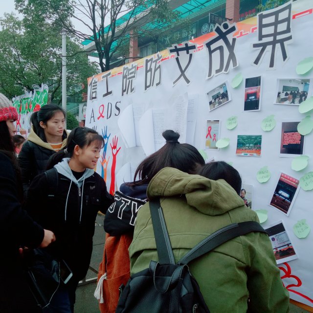 (通讯员 丁姣)2017年12月1日上午12时,信息科学与工程学院青年志愿者协会在文化广场举办了防艾成果展。展会以“青春正能量,携手共防艾”为主题,对我院11月份开展的各项防艾工作进行总结,达到让更多学生明确防艾重要性的目的。活动形式多样化,活动意义重大,吸引了众多学生到场观看与留言。