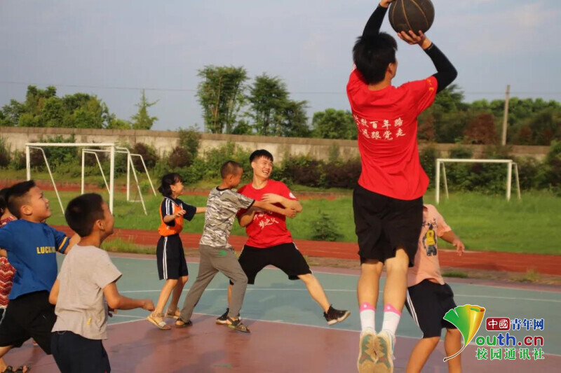 中国青年网益阳7月28日电(通讯员 鄢奕铭 何星逸)2021年7月10日起,湖南第一师范学院信息科学与工程学院新航向·梦之队赴迎风桥镇“致敬百年路,永远跟党走” 乡村振兴实践团24名队员奔赴益阳市资阳区迎风桥镇长塘仑小学,开展为期15天的暑假“三下乡”社会实践活动。队员们尽情挥洒自己的青春热情,为迎风桥学子带来温暖,带去了丰富多彩的课堂:独具匠心的红色趣味故事课、生动有趣的主持朗诵课、动手操作的趣味手工课、活力四射的篮球课……