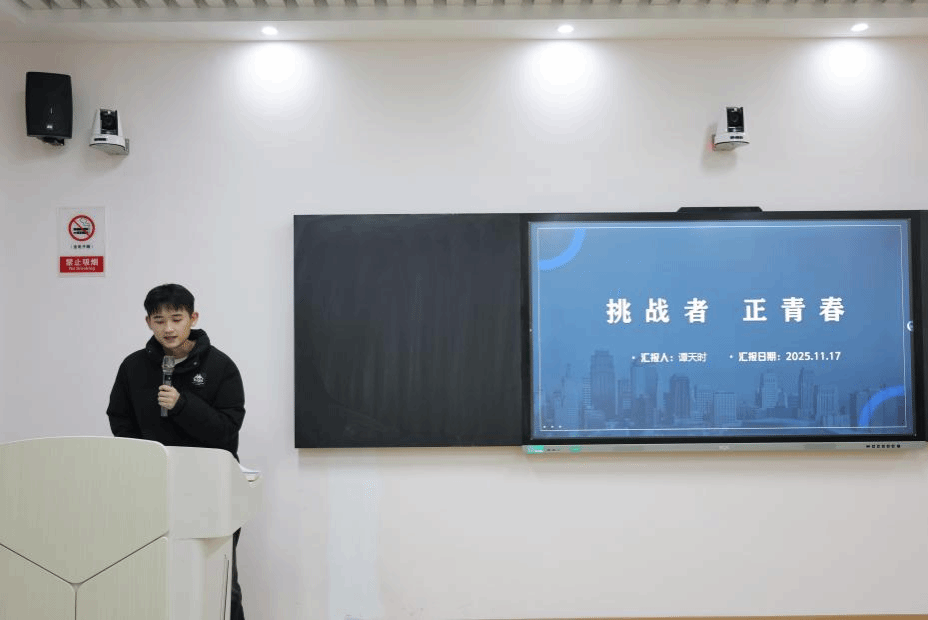 谭天时同学分享了从项目构思至落地实施的过程中,团队成员各司其职、齐心协力的奋斗经历和从校赛冲击到省赛的成功经验,让同学们深受启发。此外,谭天时还分析了“挑战杯”和“大创赛”的差异与共性,帮助同学们更好地了解不同竞赛的特性,鼓励同学们保持自信、从容应对。